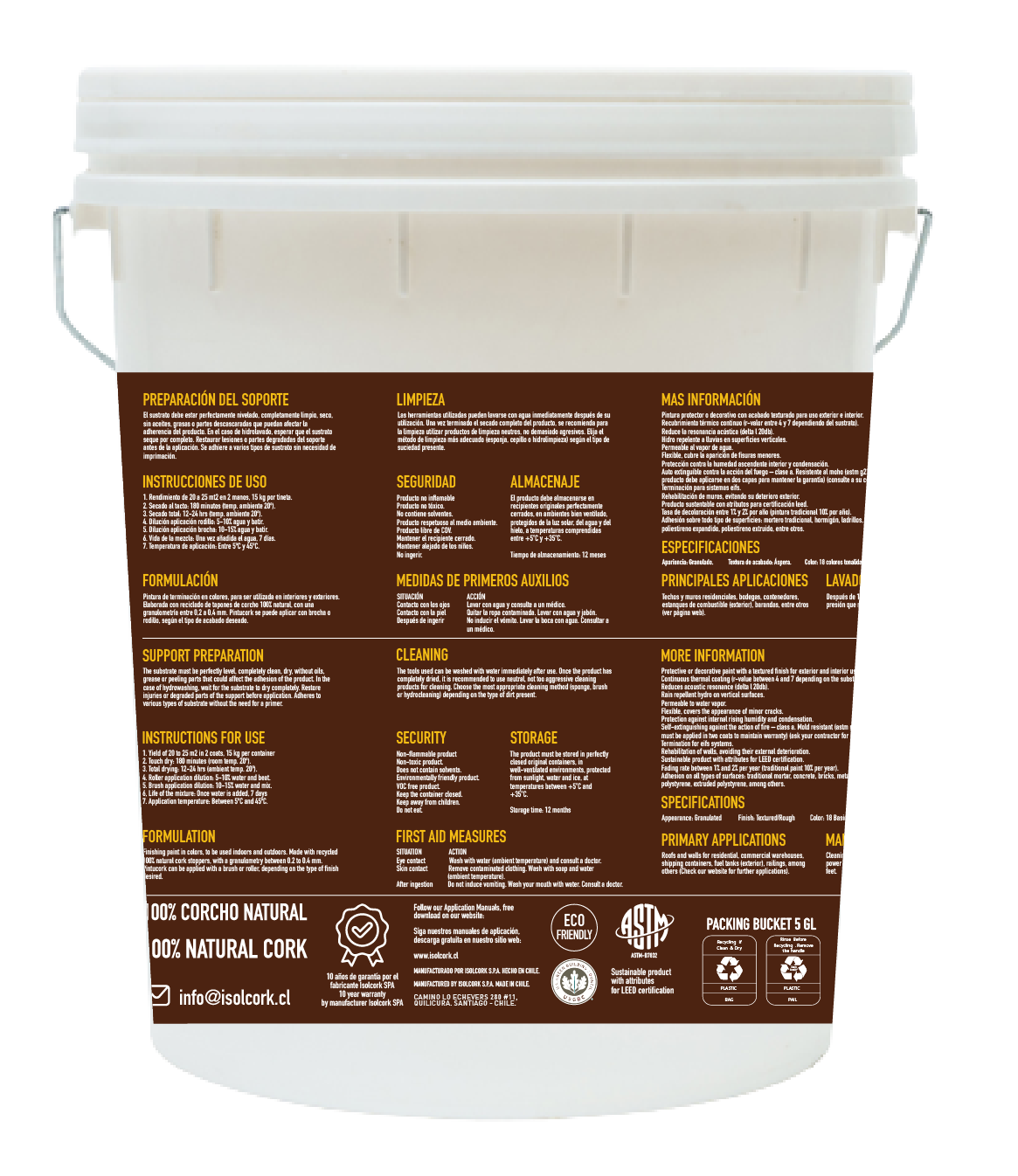 - Características: Pintura con terminación coloreada, a base de polvo de corcho